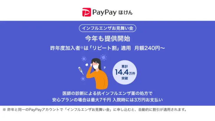 PayPay保険サービスとPayPayは10月16日、PayPayアプリ内の「PayPayほけん」ミニアプリで「インフルエンザお見舞い金」の […]