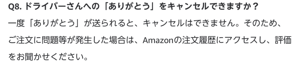 対象となるのは、直近1回(過去14日以内)の配達を担当したAmazon Flexデリバリーパートナー、デリバリーサービスパートナー、Amazon Hubデリバリーパートナー。同じ配達に対して何度も「ありがとう」を伝えることは可能だが、ドライバーが受け取れるのは一度の配達で1度まで。また、一度送った「ありがとう」はキャンセルできないとのことだ。